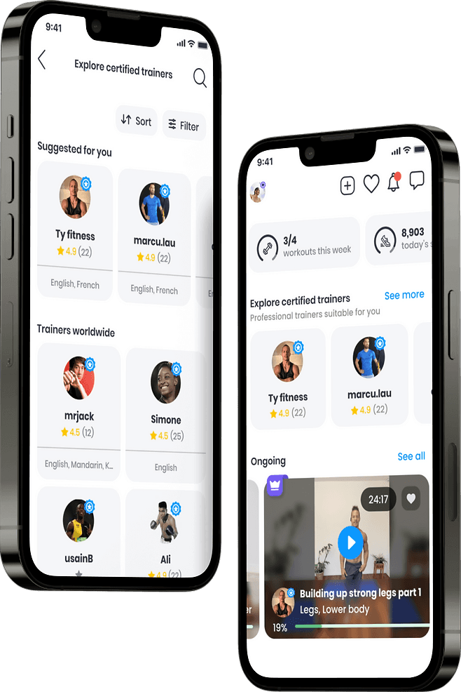 Experience the ultimate in personalized fitness with our app. Connect one-on-one with your chosen personal trainer for live, interactive workouts tailored to your specific goals. Whether you're a seasoned athlete or just starting your fitness journey, our platform provides the support and guidance you need to achieve your best.