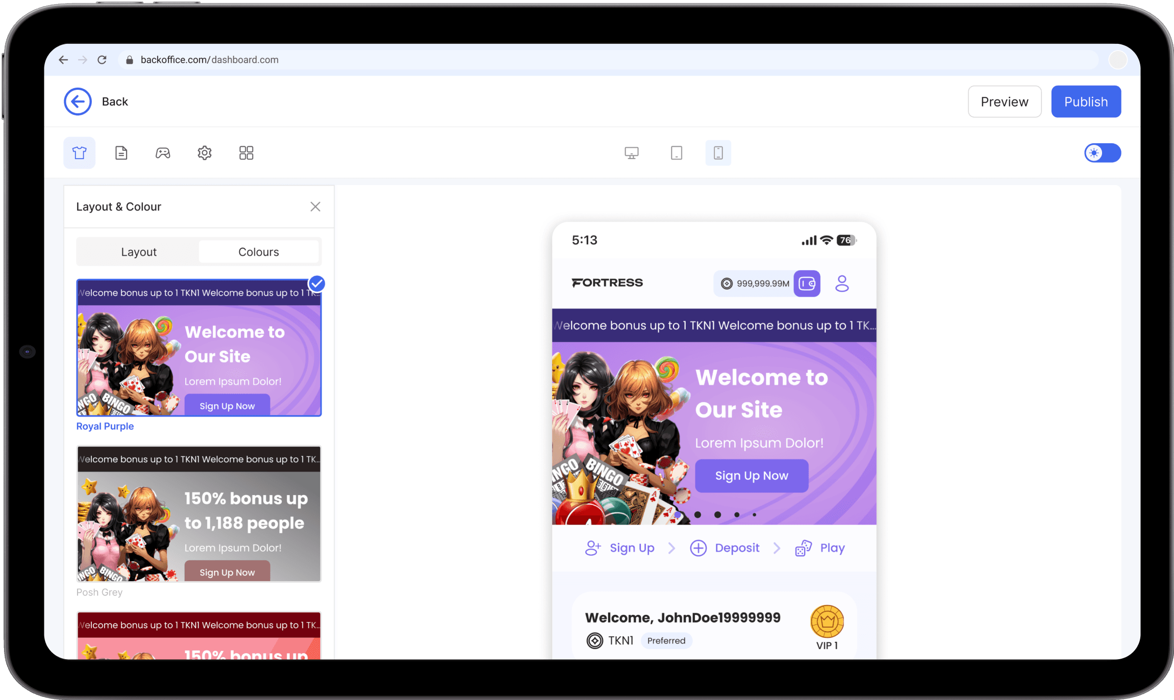 A robust back office empowers users to effortlessly manage and optimize their iGaming platform. With an intuitive interface and powerful tools, you'll have complete control over your assets and configuration.